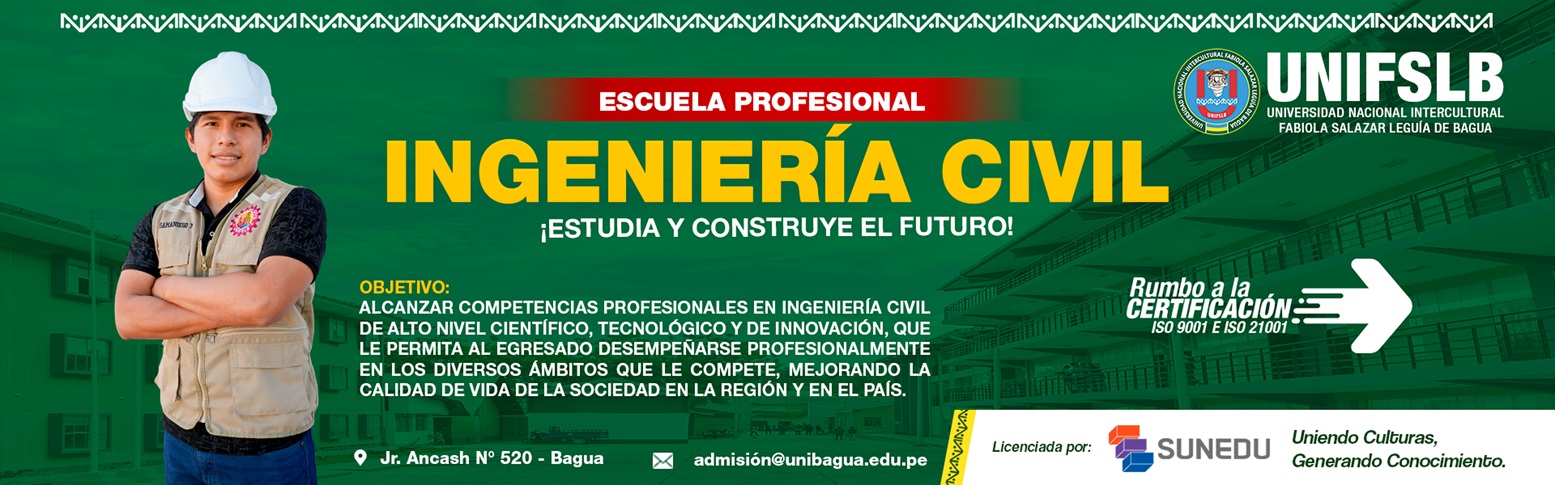 Formar profesionales de éxito, entes de inclusión cultural, generadores de desarrollo social, aplicando la ciencia y tecnología e innovación en el campo de la Ingeniería Civil.